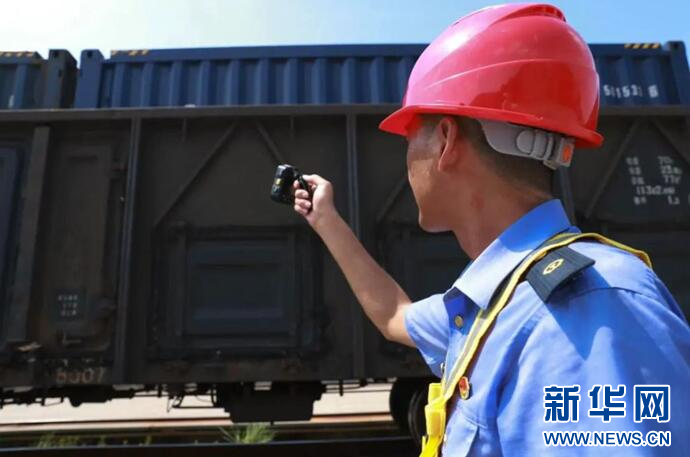 图为搭载着“恩施硒茶”的货运列车出发。新华网发