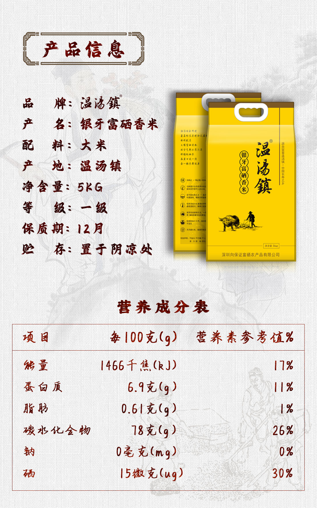 温汤镇-银牙富硒香米是南方籼米优选品种,米粒纤细苗条、晶莹洁白、光润靓丽,维生素蛋白质含量丰富,成饭米泛丝光,油润剔透、柔韧弹糯、酥软爽口,滋味悠长。产自宜春富硒优选产区,山环水绕、日照充足,采用古法自然耕作,引山泉灌溉,稻鸭共生、有机种植,确保每一粒米都是精品。